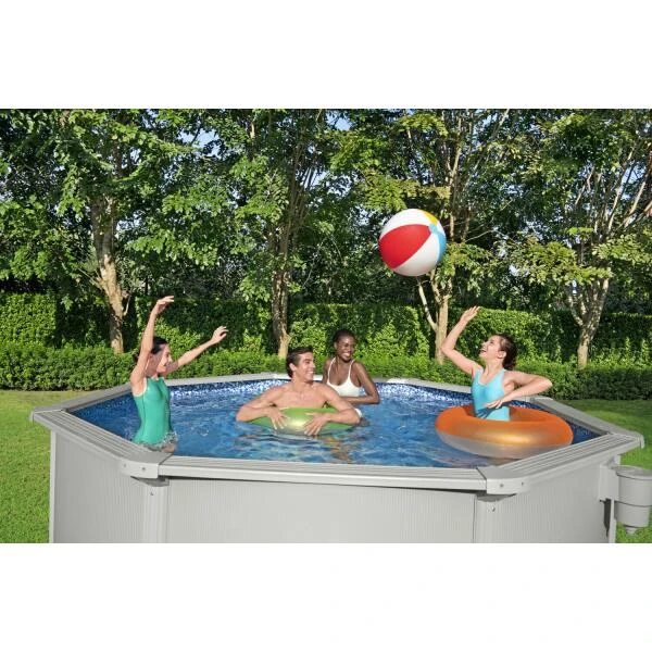 Hydrium 360 is een rond bovengronds zwembad met stalen wand en zandfilter. Het bad heeft een trap en kan het hele jaar door blijven staan, mits de juiste voorzorgsmaatregels te treffen.