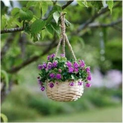 Hang het mandje met het voorziene touw in jouw tuin of huiskamer en geniet van de bloemenpracht.