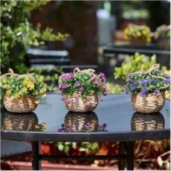 Hang het mandje met het voorziene touw in jouw tuin of huiskamer en geniet van de bloemenpracht.