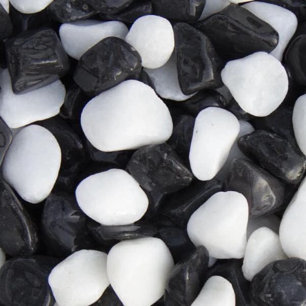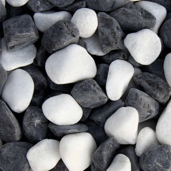 Panda grind is een prachtige siergrind, met zowel witte als donkergrijze steentjes waardoor een mooi contrast ontstaat.