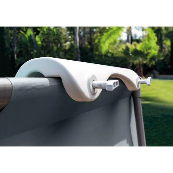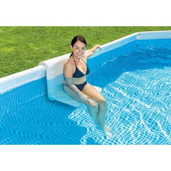 Rust heerlijk uit aan de rand van het zwembad met deze zwembadstoel. Hij is makkelijk te bevestigen aan iedere harde zwembadrand van een Intex Frame zwembad.